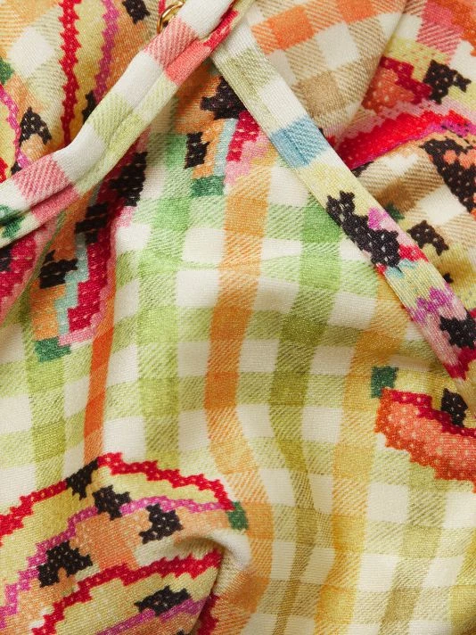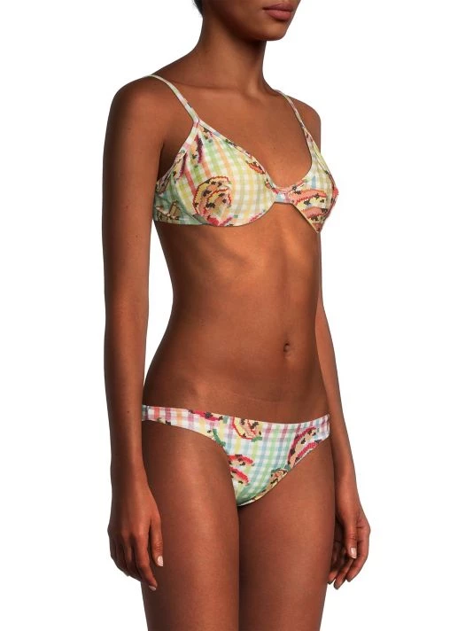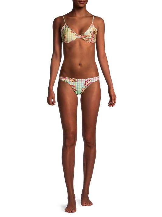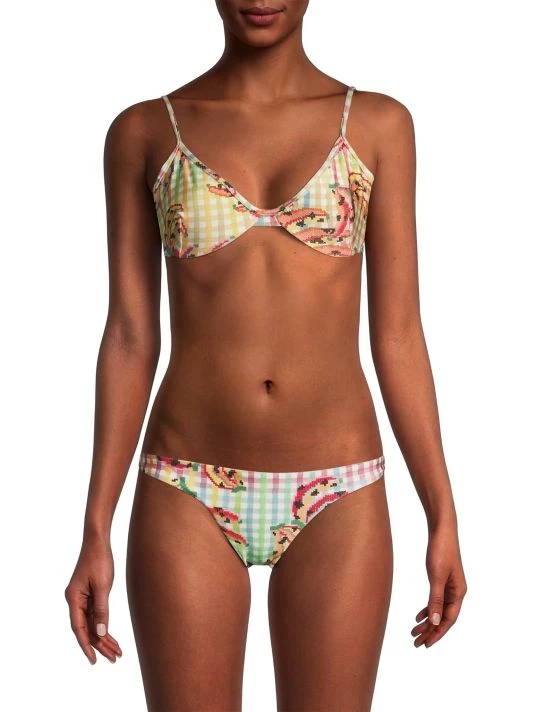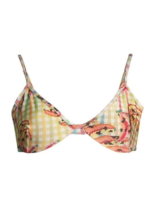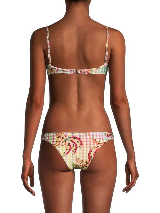 ONLY AT SAKS. Showcasing a vintage-inspired silhouette, Farm Rio’s Banana Vichy bikini top is detailed with a V-neck, adjustable straps, and concealed underwire support.