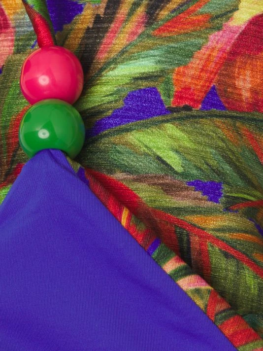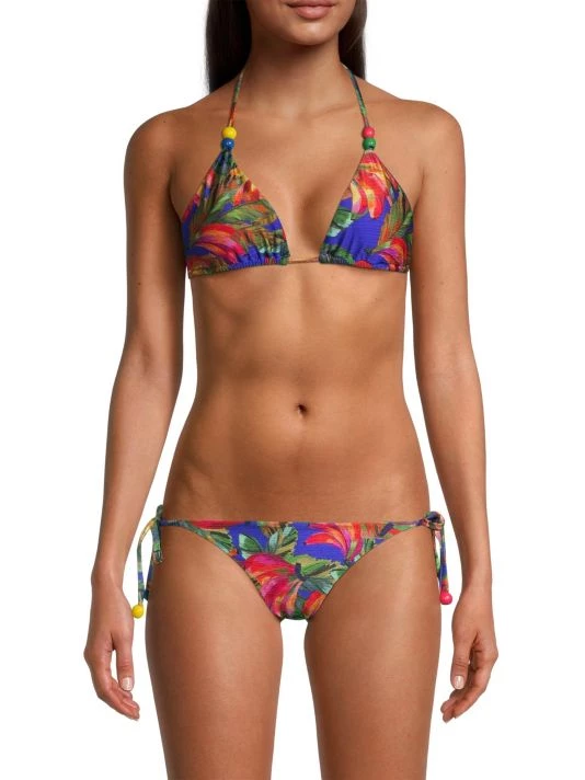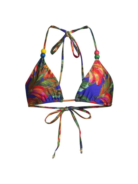 The Bananamix bikini top by Farm Rio is detailed with a punchy tropical print.