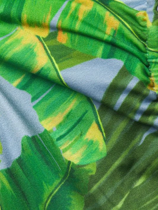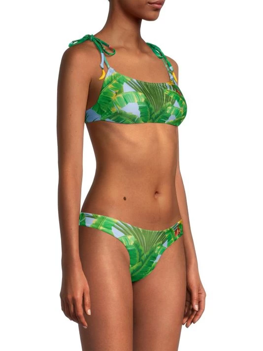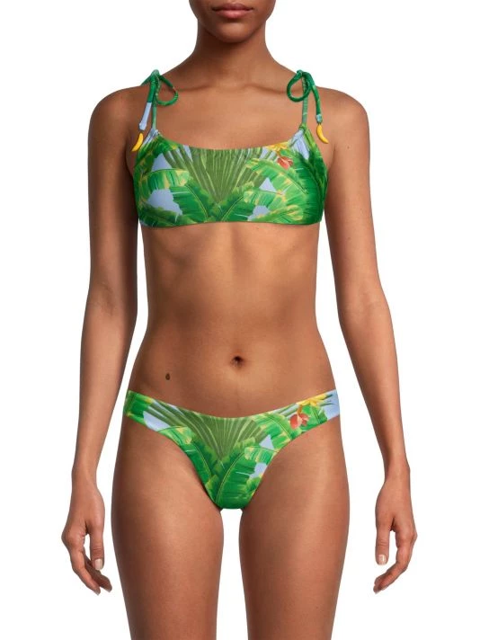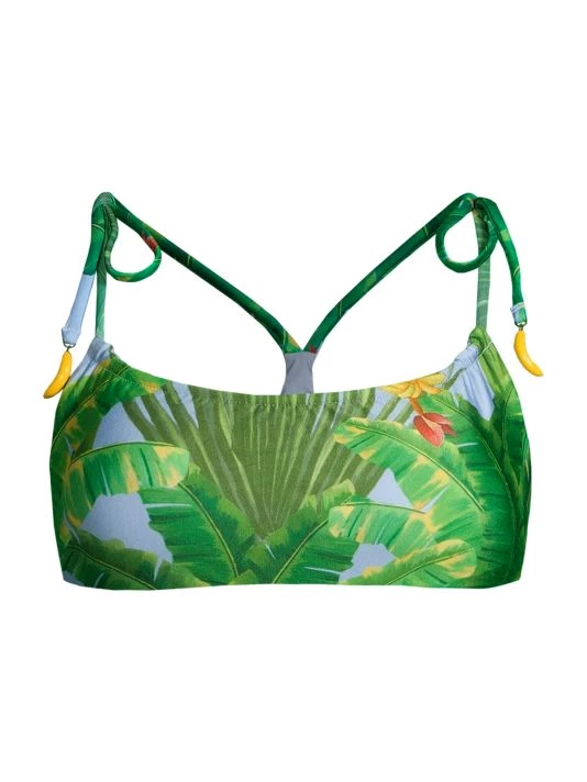 ONLY AT SAKS. Cut from microfiber jersey, Farm Rio’s Fresh Bananas bikini top features a round neck with demi cups, adjustable tie straps, and a racerback.