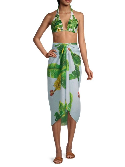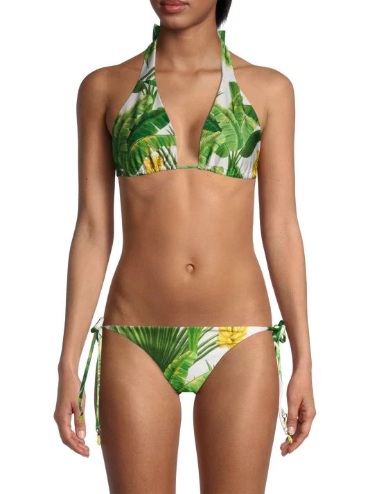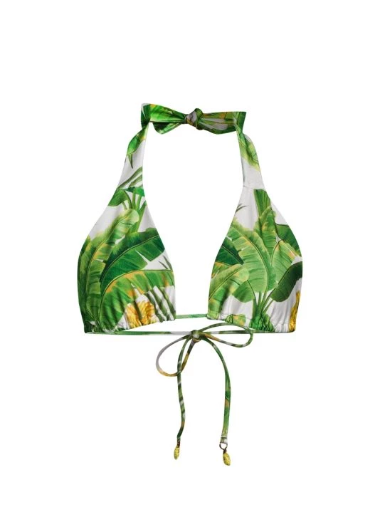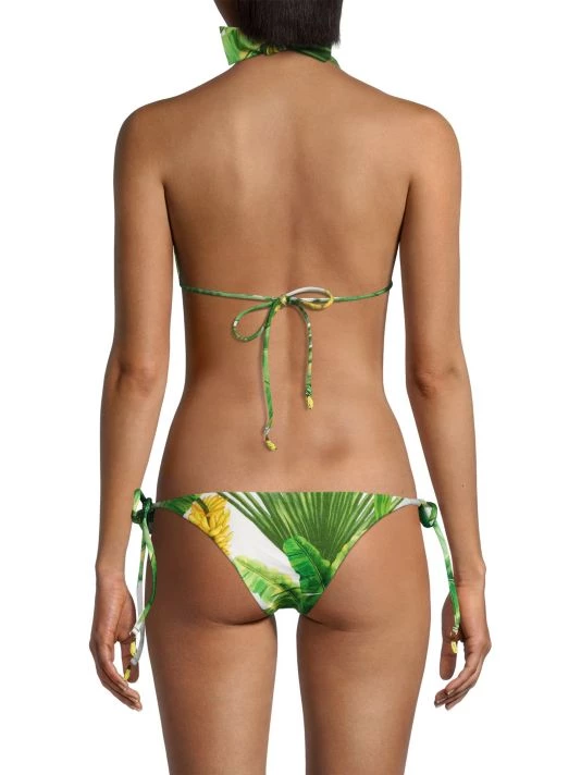 ONLY AT SAKS. This halterneck bikini top from Brazilian label Farm Rio features a wide neck tie closure and a string back tie closure. A tropical botanic print completes the look.