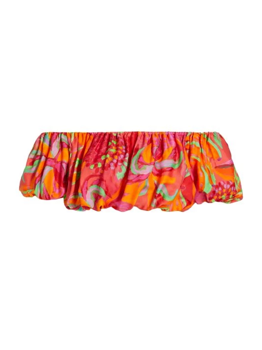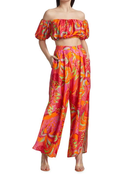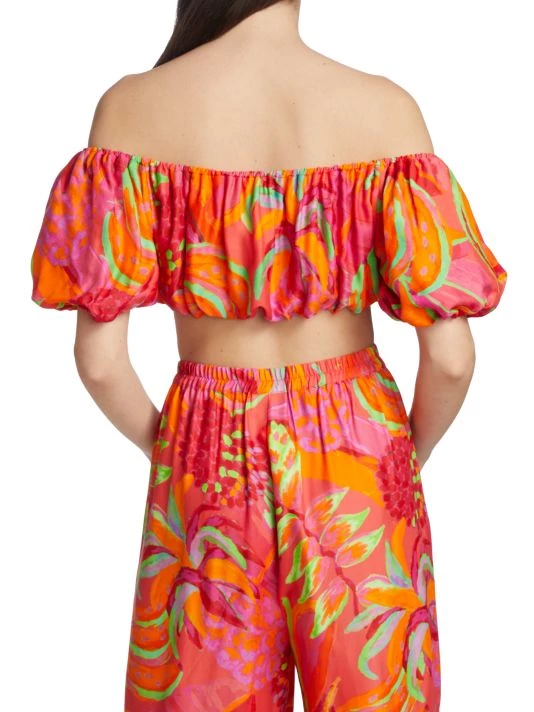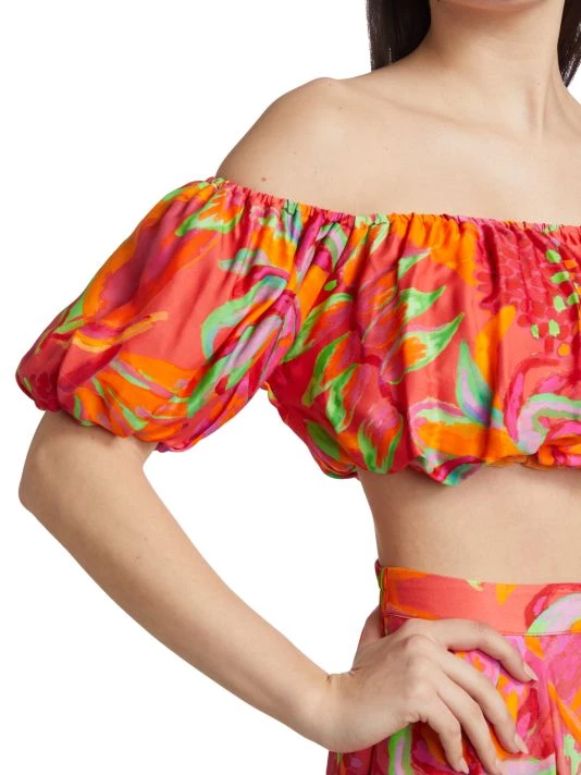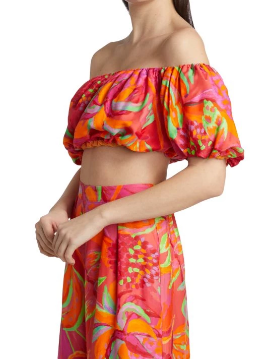 The Fruit Brush crop top from Farm Rio features a vibrant print and puff sleeves.