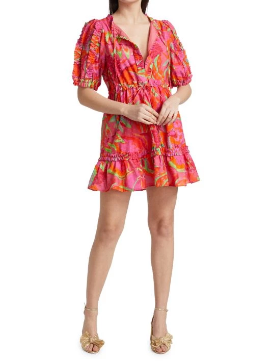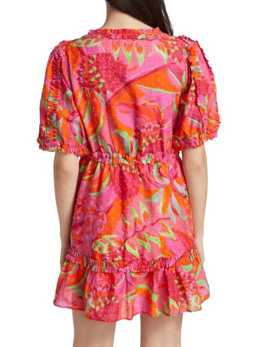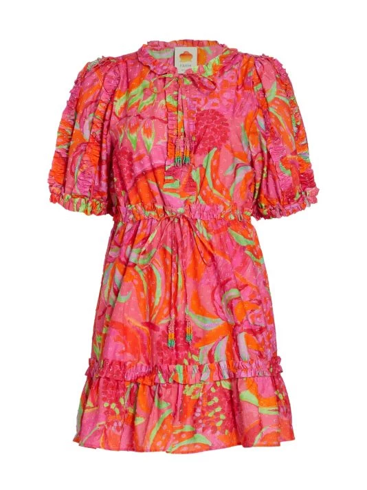 Crafted of cotton, the Fruit Brush minidress from Farm Rio features a punchy print and ruffle detailing.