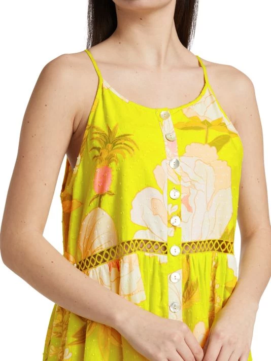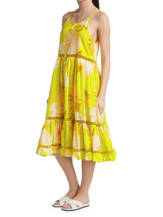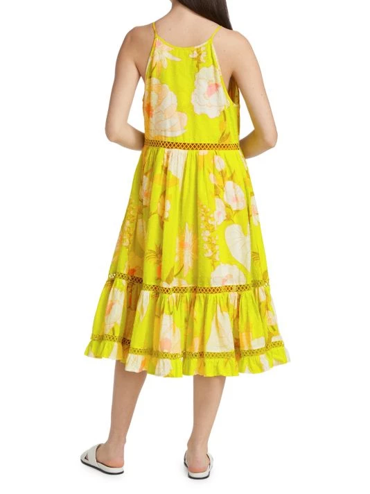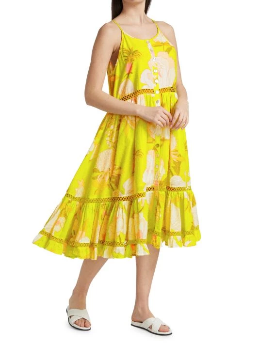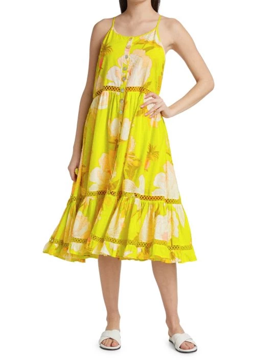 Crafted of cotton, the Neon Garden midi-dress by Farm Rio is features a textured finish and detailed loop embroidery.