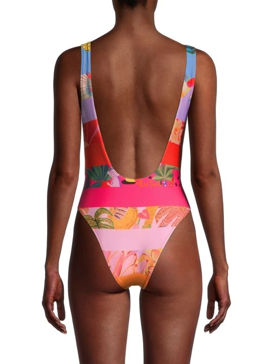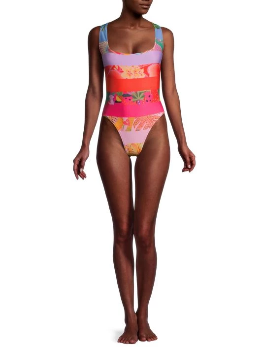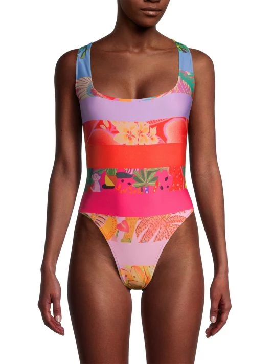 ONLY AT SAKS. The Ombré Forest one-piece swimsuit by Farm Rio is decorated in pastel stripes with hints of florals.