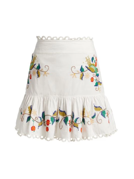 Featuring a voluminous tiered hem, Farm Rio’s Pitanga skirt is detailed with decorative embroidery.