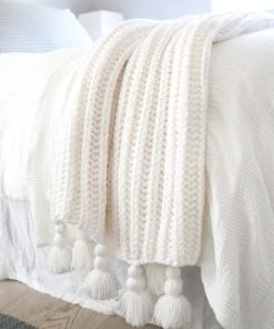Pom Pom At Home Bianca Tassel-Embellished Velvet Pillow Light Grey