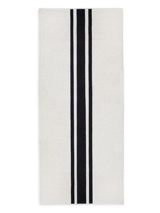 The Beachwood rug is beautiful in its simplicity with the contrasting stripe. The rug is hand-made with a mixture of wool and jute. Its flatweave construction is the perfect foundation for any design aesthetic.