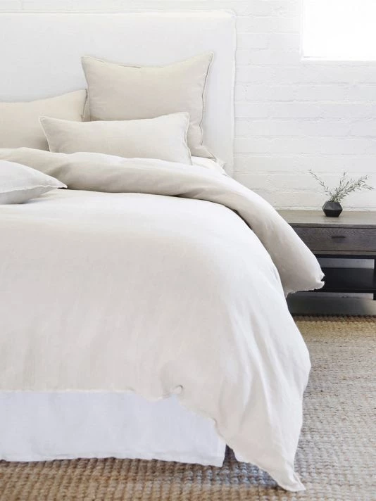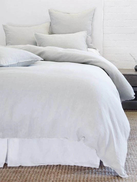 From the Blair Collection. This collection is youthful and casual with subtle frayed edges. Made of linen, the duvet cover and shams are finished with simple tie closures. Inserts sold separately.
