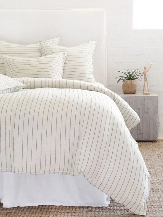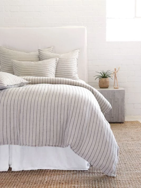 From the Blake Linen Collection. Giving a modern refresh to a traditional stripe, this hand-loomed linen duvet features an interwoven stripe texture washed for a lived-in look. The melange of textures within this woven bedding elevates the space for a sophisticated, yet relaxing retreat.