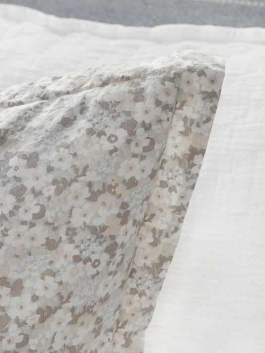 From the June Collection. This cotton duvet is reversible with a lovelysubtlefloral pattern on one side and a simple stripe on the other, creating two different, yet fun looks.