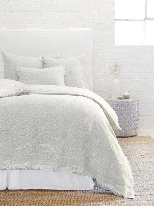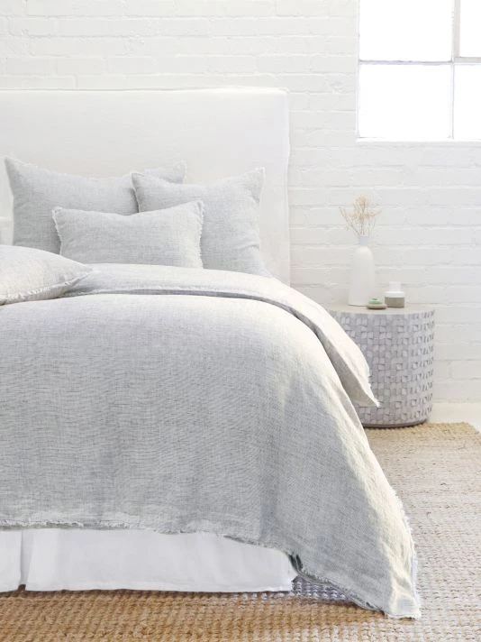 From the Logan Collection. Subtle frayed edges of soft linen add a dash of unexpected detail to this logan collection. Woven with two different colored yarns for a heathered effect, the duvet cover and shams feature shell button closures.