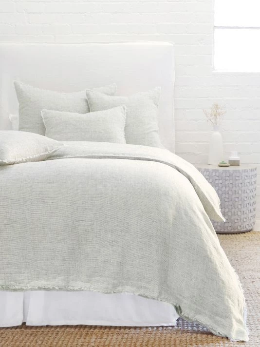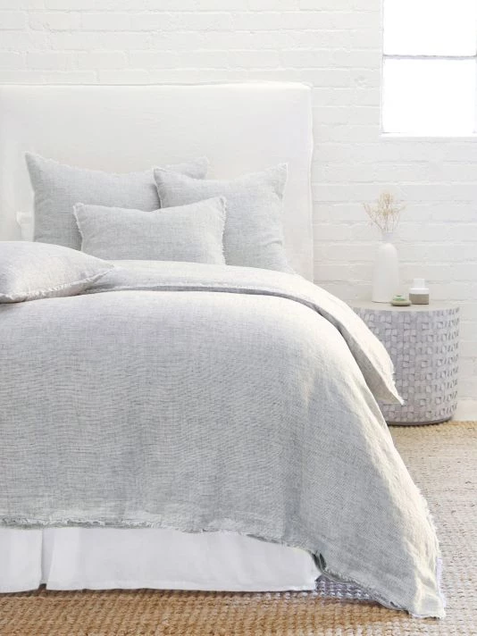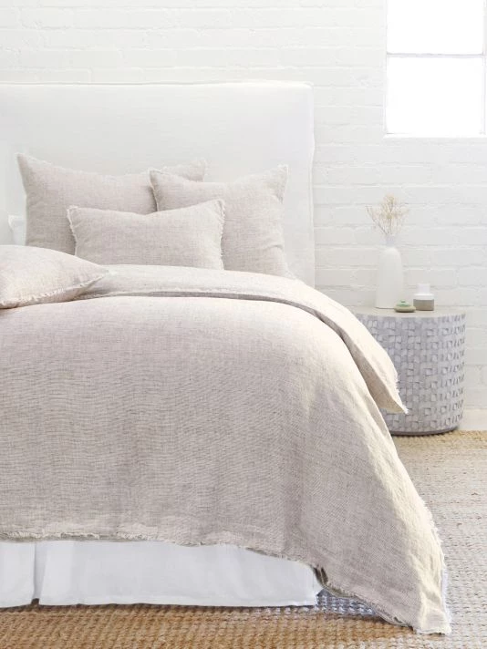 From the Logan Collection. Subtle frayed edges of soft linen add a dash of unexpected detail to the Logan sham. Woven with two different colored yarns for a heathered effect, this sham features shell button closures.