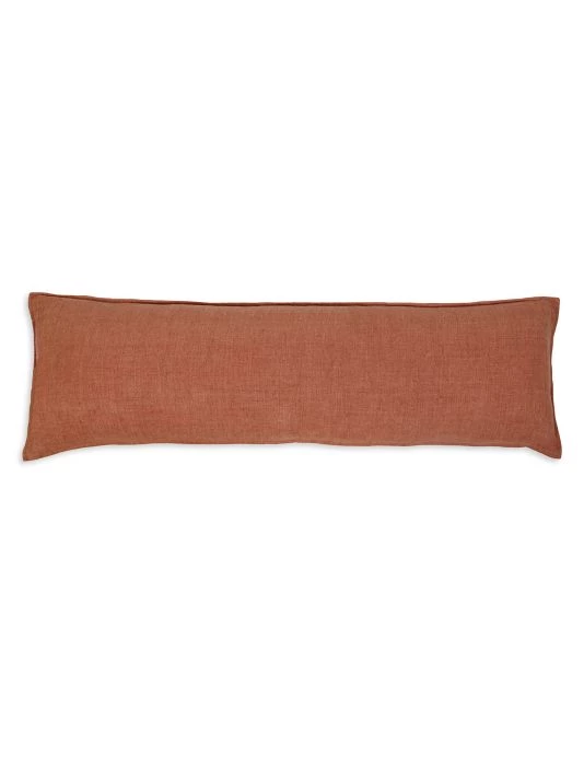 This hand-loomed body pillow is crafted of heavy knit linen with a subtle flange. Each pillow comes with an insert.
