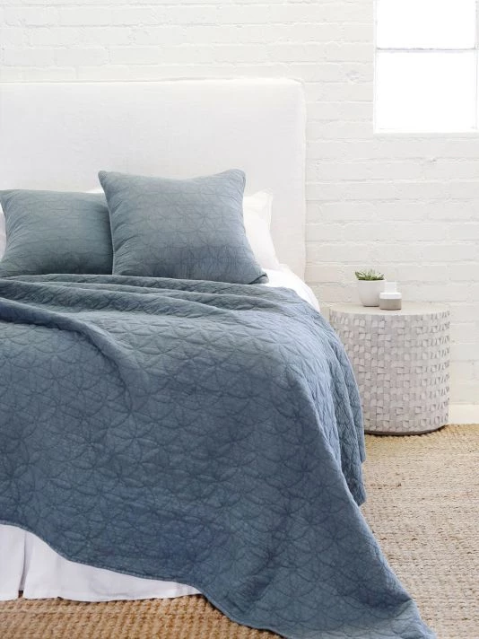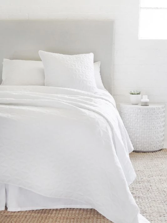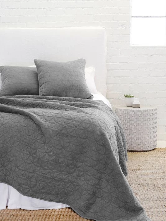 Pom Pom at Hom’s Oslo coverlet is crafted of 100% stonewashed cotton and features a geometric petal pattern.