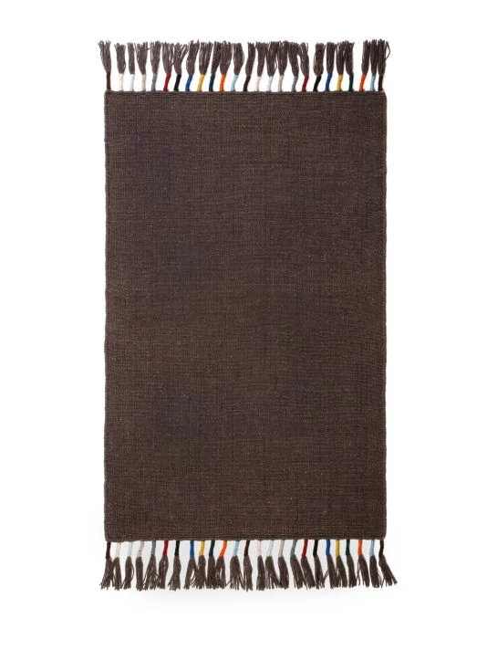 A mix of jute and wool creates this vibrantly threaded area rug from Pom Pom at Home, adorned with tasseled sides.